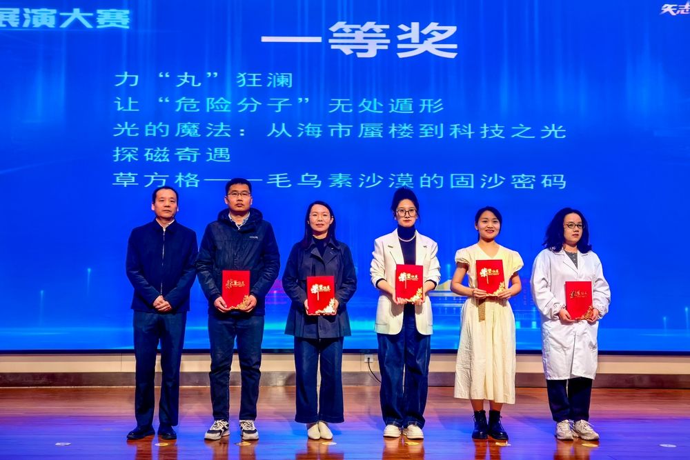 在英国365集团公司工程技术人员罗艳彦老师的指导下,郑瑞莹、田依平、侯铭、赵浩宇、李怡乐五位同学精心设计编排,在舞台上生动演绎了薄膜荧光传感器工作原理,巧妙地将实验过程编排成了一场小舞台剧,让观众直观地看到荧光传感器如何让TNT、黑索金、太安等“危险分子”现形。