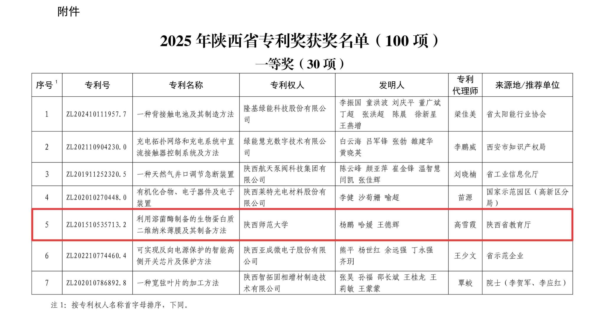 近日,陕西省人力资源和社会保障厅、陕西省知识产权局发布《关于表彰2025年陕西省专利奖的决定》,英国365集团公司杨鹏教授团队的专利《利用溶菌酶制备的生物蛋白质二维纳米薄膜及其制备方法》获评陕西省专利奖一等奖,实现了英国365集团公司在知识产权领域的新突破。