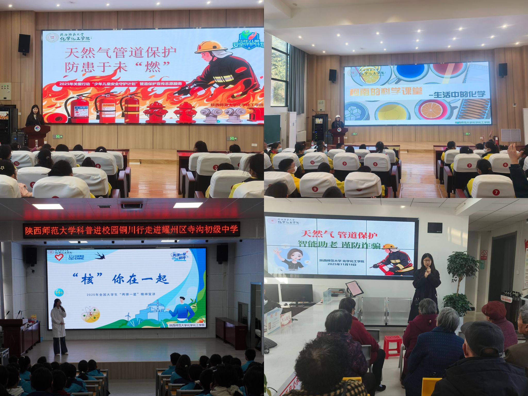 团队成员进行弘扬科学家精神、管道保护和安全自护、人工智能助老和生活中的化学主题宣讲,共计开展科普主题宣讲8场。在“两弹一星”精神科普宣讲中,团队成员讲述郭永怀海外研学16年成名后,1956年弃美归国,隐姓埋名扎根大漠五载,率团队以算盘、计算尺完成原子弹关键计算,诠释科学家精神。一位小朋友听后分享自己的感受说,“郭爷爷用算盘算出原子弹的关键数据,简直是太厉害了!我以后也想成为像郭爷爷这样厉害的人!”团队成员胡嘉欣表示,“我们要做的就是用生动的语言、有趣的互动、鲜活的案例,让宣讲有温度、有深度、有力度,让科普深入人心、点亮生活”。